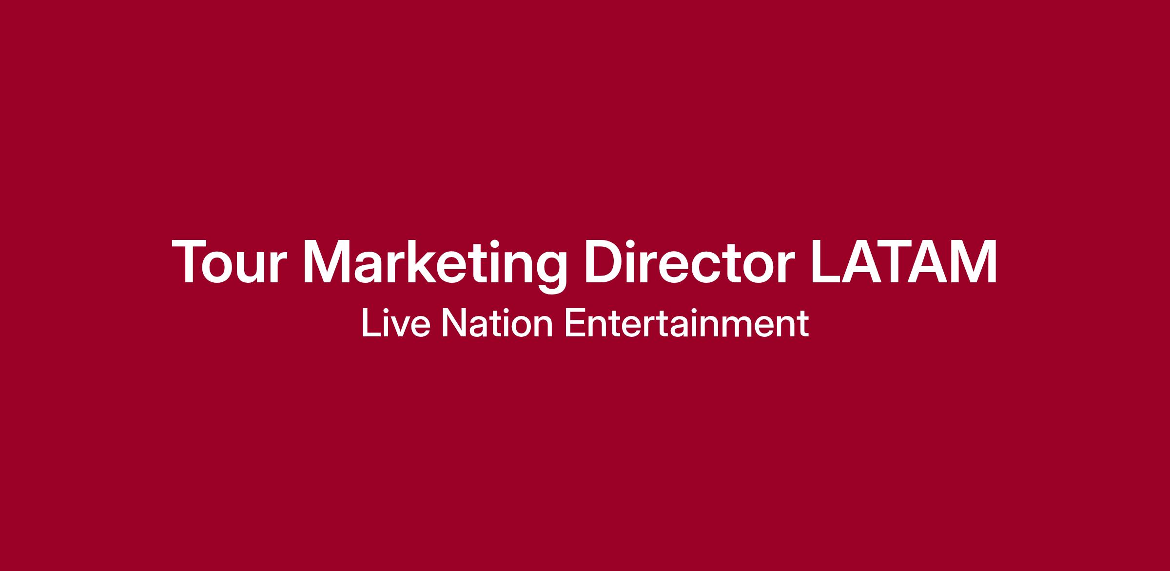 Live Nation’s Latin America Concerts business is looking for a Tour Marketing Director to develop & execute innovative marketing strategy for LATAM concerts and tours across our region. This person will provide best in class service and foster strong relationships with both our internal teams and external partners.They will act as a strategic partner in developing marketing plans working internally with cross functional teams – including partnering with creative strategy to lead creation of artist pitches. They will also lead marketing for special projects – developing overall marketing strategy in coordination with external partners & regional marketing team.